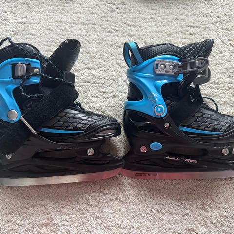 ishockeyskøyter for barn i størrelse 32. Skøytene har svart og grå fargekombinasjon og er designet for ishockey.