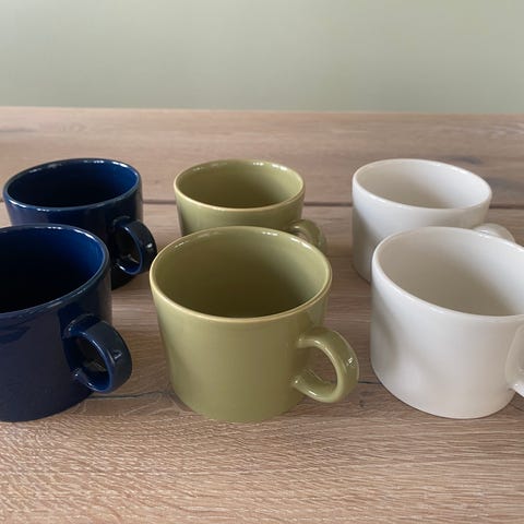 Iittala Teema kopp i grå farge. Koppene er laget av keramisk materiale og er designet for daglig bruk. De er egnet for bruk i mikrobølgeovn og oppvaskmaskin, og passer til servering av varme og kalde drikker.