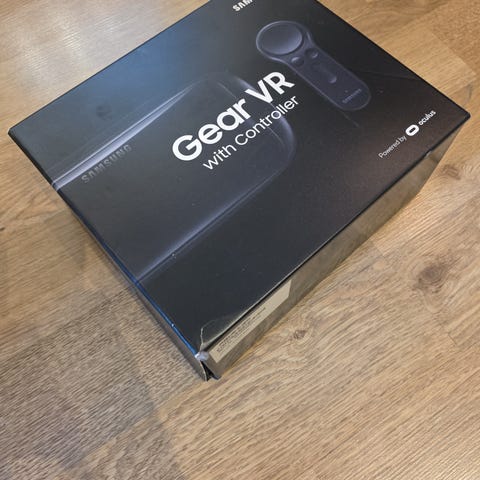 Samsung Gear VR-briller designet for virtuell virkelighet. Produktet har et kompakt design.