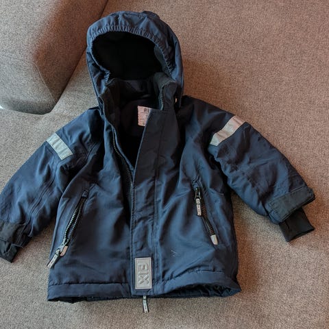 Nesten som nye - kjøpte den i slutten av vintersesongen ifjor og ble desverre for liten nå. Har gode vindtette og vanntette egenskaper. Normal i størrelsen.