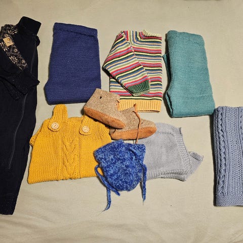 Alt er i ull, og farge blå.