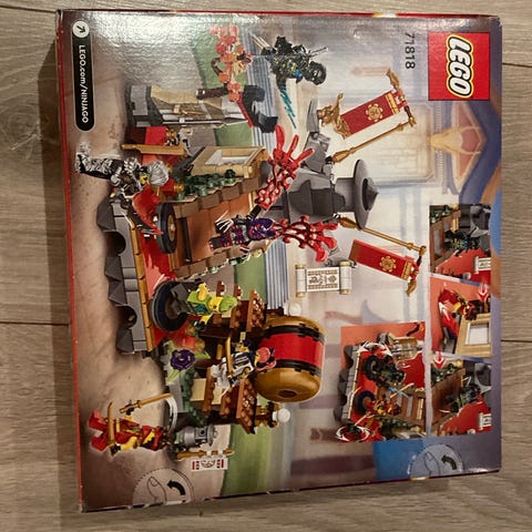 LEGO Minecraft LEGO byggeklosser, The netter portal Ambusj. Sett med tema Minecraft, laget av LEGO. Inneholder ulike figurer og byggeelementer knyttet til Minecraft-universet. Esken er uåpnet men har en rift på fremsiden etter teip fra gavepapir.