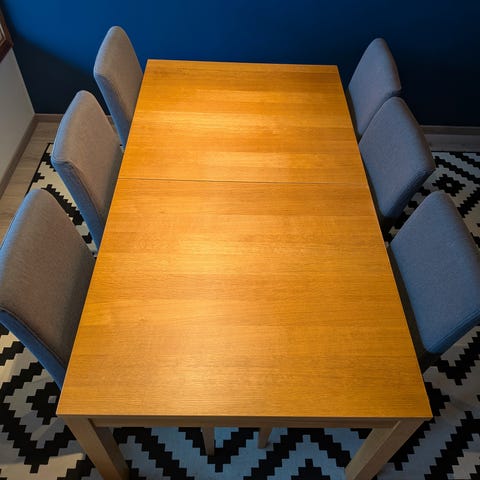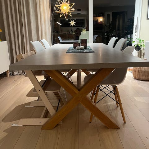 Fint IKEA bord i god stand selges med stoler. Bordet tilsvarer Skogsta bordet, men med litt andre detaljer.