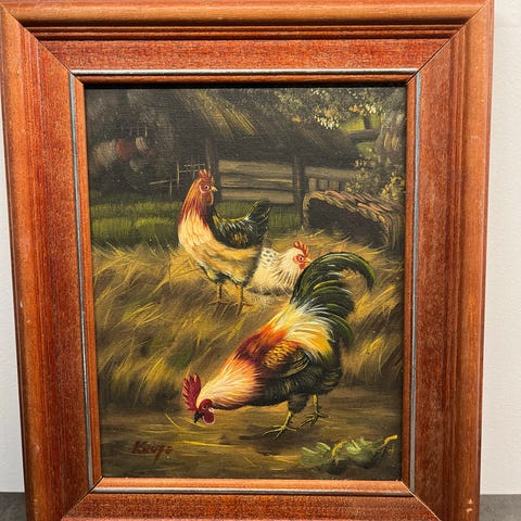 Kunstner er ukjent, men bildet fremstår som et eldre arbeid og leveres med forgylt ramme som passer uttrykket godt.