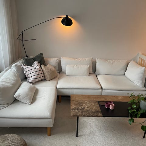 Fin sofa fra jysk. Den er i god stand og ingen feil på den, men litt nupper på den som sikkert kan fikses. Flere bilder kommer