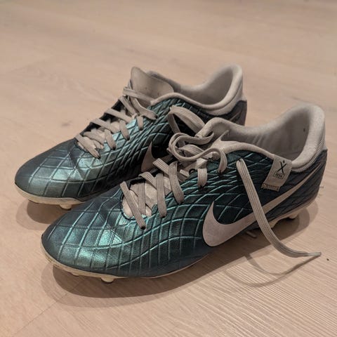 Nike Tiempo Legend 8 fotballsko i hvit farge, størrelse 42. Skoene har knotter for bruk på kunstgress. Brukt en halv sesong, byttes grunnet kjøp av nye sko. Nypris 1250,-kr