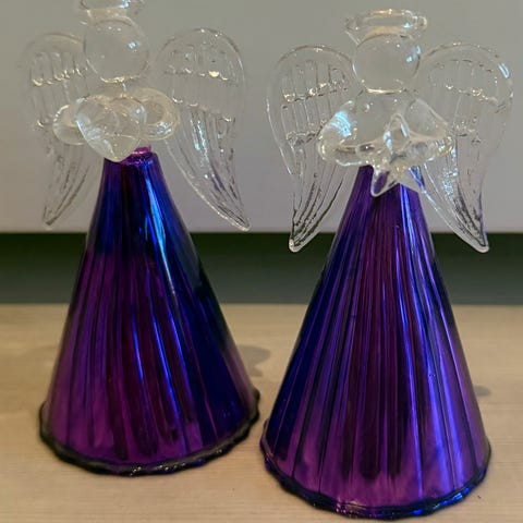 2 stk engler 15 cm høye selges for 300 kroner per stk. Englene er laget i sølvplett , med messing vinger og glorie. Selges helst samlet.