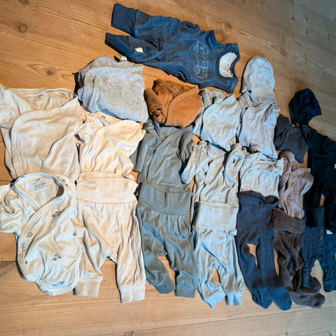 Selger en pose med barneklær fra fødsel til 9 måneder.