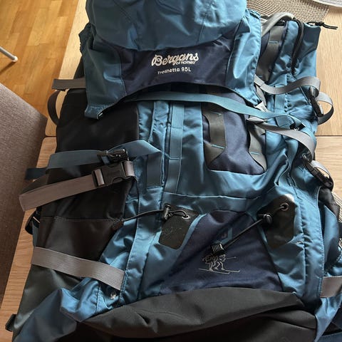 Pent brukt kamerasekk med plass til speilrefleks og linser. Pluss genser, matpakke, termos. Fin til en dagstur.