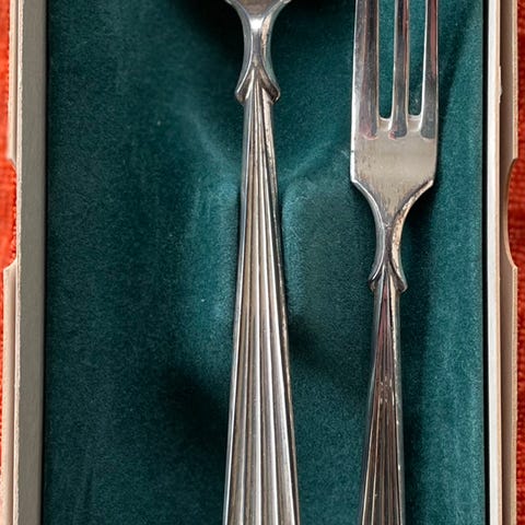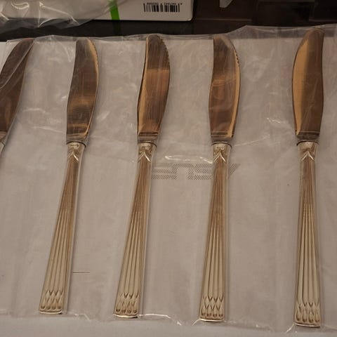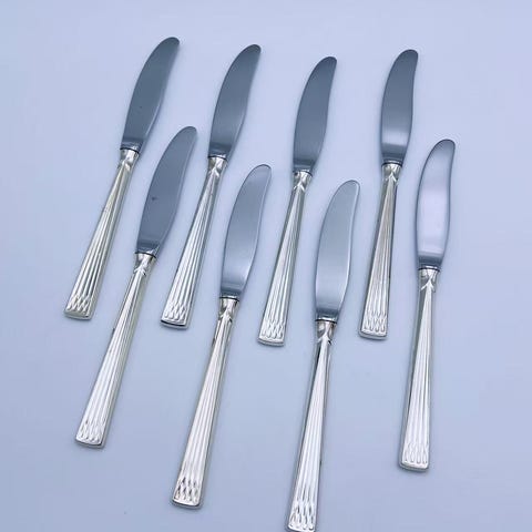To store spisekniver i Arvesølv. Lengde:21,8 cm. Nypris pr. stk .kr:2049.Min pris kr.750 pr. stk. For begge kr.1500. Tar Vipps og sender Norgespakke (kr.76). Kjøper betaler frakt.