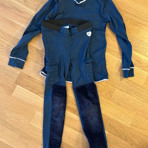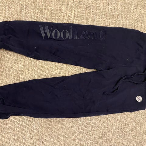 WoolLand barnebukse i størrelse 98 for jente. Laget av merinoull, blå farge. Buksen har elastisk midje med snøring og dekorative detaljer på lommer.