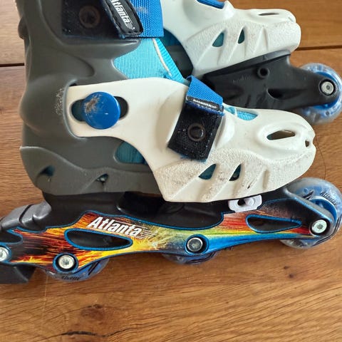 Atlanta rulleskøyter for barn i størrelse 31 til 34. Skøytene har justerbar størrelse og kommer i fargene blå og svart. Egnet for bruk innen rulleskøytesport.