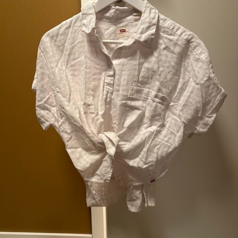 Den røde skjorten er kjøpt i London på tidlig 2000-tallet. Str Xs, grei i str. 100kr.