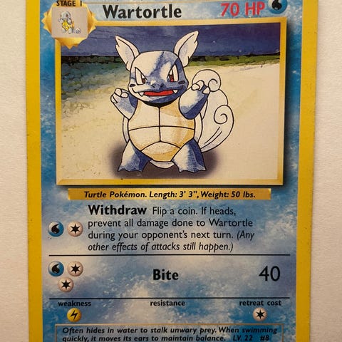 Selger dette fine kortet av Wartortle. Dette kortet har en brett i kanten.