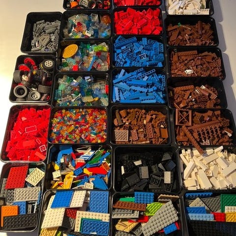 LEGO DUPLO byggeklosser sett med ulike farger og former. Passer for små barn og er laget for enkel håndtering og lek.