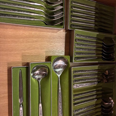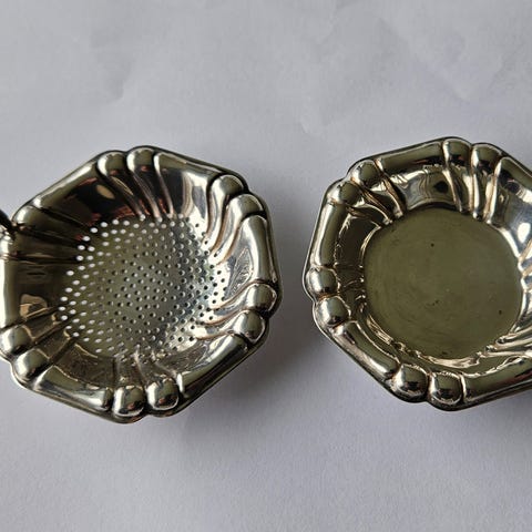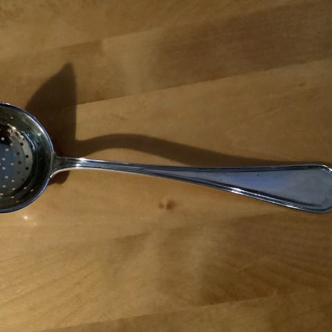 Gammel tesil, sølvplett, merket med 20 bak på skaftet.