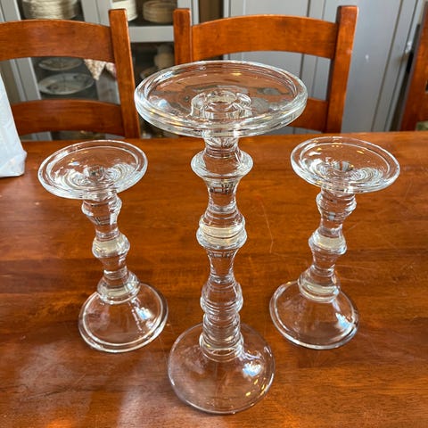 Blankt og rosa glass telys og kubbelysholdere. Nypris 9kr stk, selges for 6kr stk eller 40 kr samlet alle sammen eller 30 kr samlet etter farge.