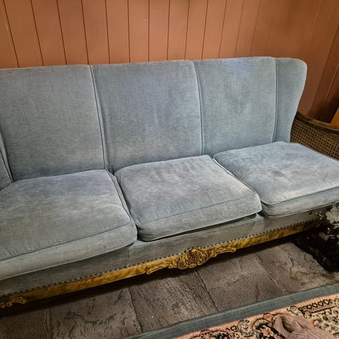 Den er bare stått til oppbevaring her. Alle trekk kan vaskes. Har vasket sitteputetrekk, men ikke de andre.