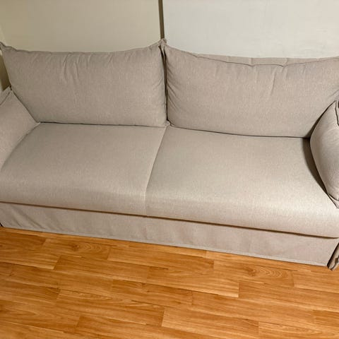 BEDinside sjeselongsovesofa med seng 140x200. Produsent norske Hovden Møbel. Mekanisme (slåes ut i en bevegelse uten å fjerne verken rygg eller seteputer) fra italienenske Lampolet. Madrass med bonellfjær fra italienske Springs. Tekstil er av meget høy kvalitet. Meget komfortabel og særdeles enkel i bruk. Stor oppbevaringsplass i sjeselongdelen. NB! sjeselongen kan speilvendes og sovesofaen kan også settes opp uten sjeselongdelen. Stått på Stortinget, ikke vært sovet i, kun blitt brukt som sofa. Nypris hos Bohus: 44000kr