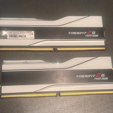 G.Skill Trident Z5 Royal Neo DDR5-6400 RAM med 32GB kapasitet fordelt på 2 x 16GB moduler. Dual Channel, CL30, DDR5 teknologi med en hastighet på 6400 MHz (MT/s) og PC5-51200. CAS latency: 30-39-39-102. Moduler har lavt varmeprofil og støtter AMD EXPO-profil for optimal ytelse. Farge: sølv med ARGB LED belysning. Kompatibel med Gigabyte Fusion RGB 2.0 og Asrock Polychrome Sync og MSI Mystic Light.