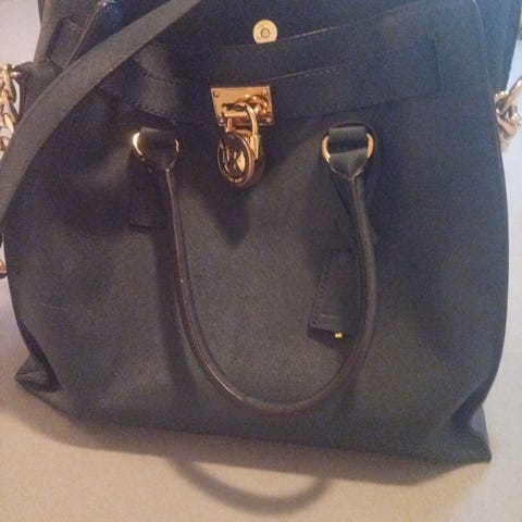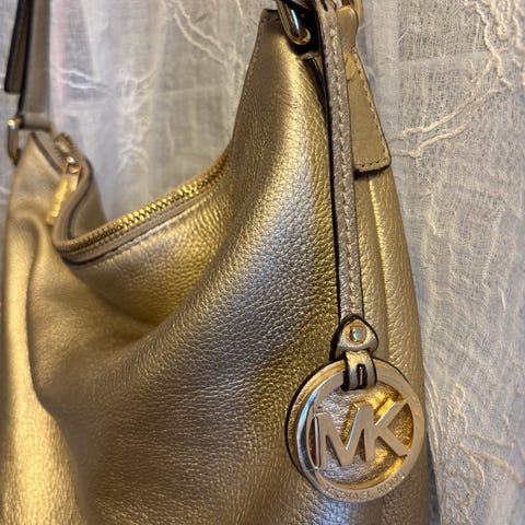 Pent brukt Michael Kors crossbody-veske i gullfarge.