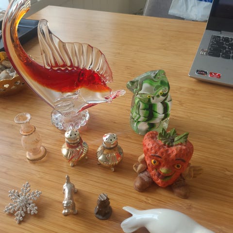 Div kjøkkenutstyr, tallerkner, eggeglass, fat mm