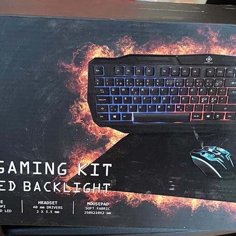 Gaming-tastatur med mus og headsett. Ubrukt