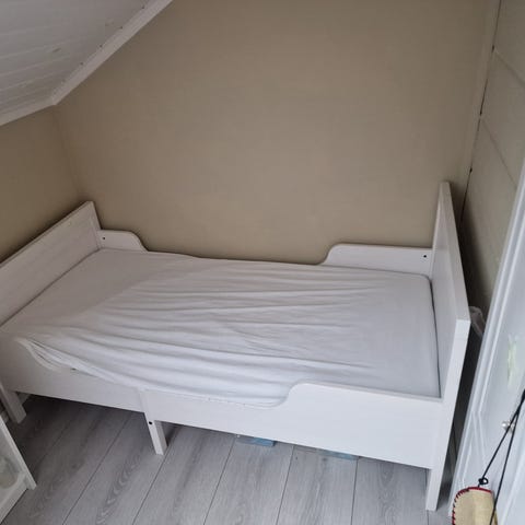 90X200 seng ifra Ikea med en liten justering. Tatt av beina for full bakke seng.