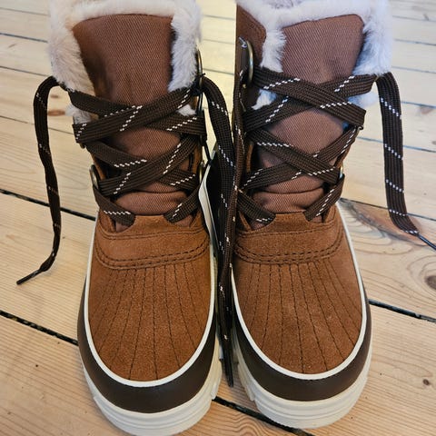 Stockholm Design Group støvler i størrelse 38. Fargen er off-white, og skoene har snøring foran. Innvendig foret med mykt materiale for komfort. Sålen har mønster for grep.
