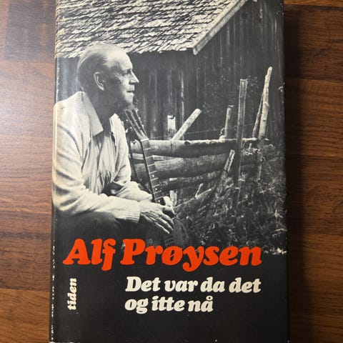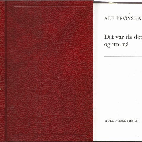Alf Prøysen Det var da det og itte nå Bok. Inneholder tekster og fortellinger av Alf Prøysen med temaer som slektstavle, prestvangen, gjester etter prestvangen, sykdommer, skremt, ridkommens forberedelse, teknikkens vidunder, høst og vinter, standforskjel, og mer. Boken har svart-hvitt fotografi og tekst, og er på norsk.
