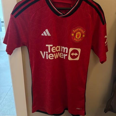 Adidas Manchester United fotballtrøye i størrelse M. Trøyen er svart med røde detaljer og laget for herre. Egnet for fotball.