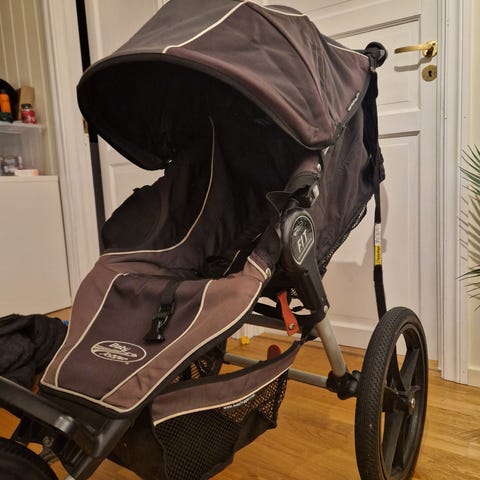 Baby Jogger Trillevogn i grå farge. Fantastisk vogn å gå tur med - også insulinet terreng. Litt treg å legge sammen. Hjulene tas lett av.