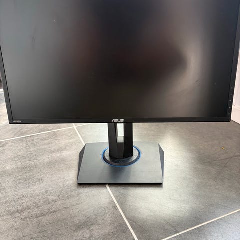 Lenovo 24 tommer skjerm med standard svart ramme og stativ. Skjermen har en slank profil og en justerbar fot for stabil plassering på skrivebordet. Skjermen er brukt til gaming. Selges grunnet utskiftning.
