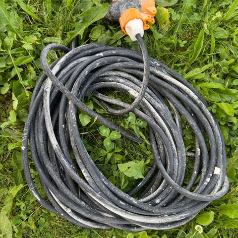 Elektrisk kabel med blå og svart isolasjon. Kabelen er egnet for elektriske installasjoner. 7 meter varmekabel og 5 meter skøyteledning