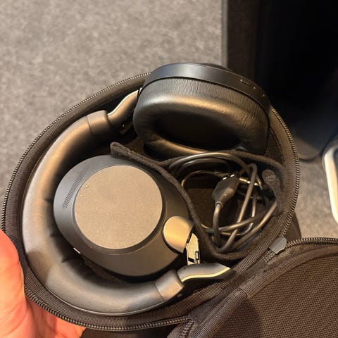 Jabra Evolve2 2 Buds trådløse hodetelefoner i svart farge. Inkluderer USB-C-adapter og støtter Bluetooth 5.2. Har aktiv støyreduksjon (ANC) og er optimalisert for Microsoft Teams. Designet for profesjonell bruk med fokus på klar lydkvalitet.