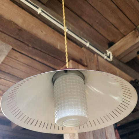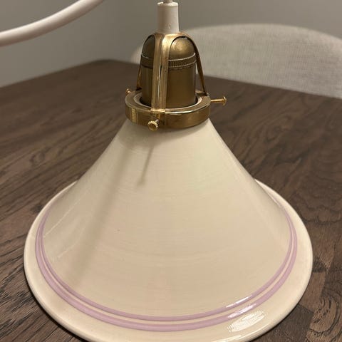 Unik lampe i keramikk formet som et skjell. Lyspære som "blafrer" følger med.