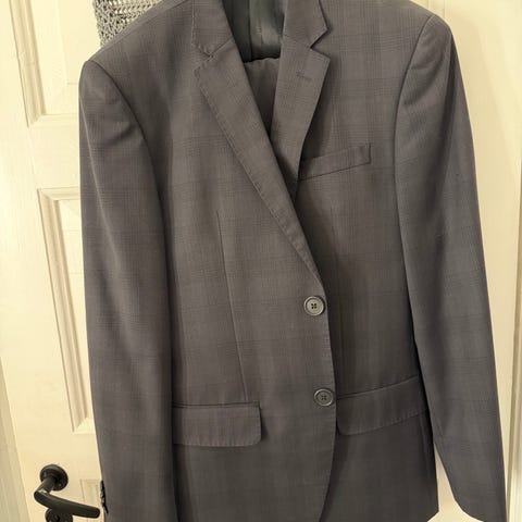 Tiger of Sweden-dress i blå farge, laget av ullmateriale. Dressen er i størrelse 50 og er normal i størrelsen.