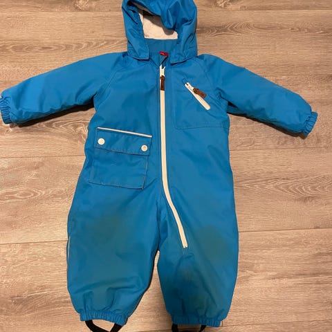 Selger en vinterdress fra Reima i str. 80. Ikke vasket, så er litt skitten noen få steder kan lett vaskes av. Ingen hull eller andre merker.