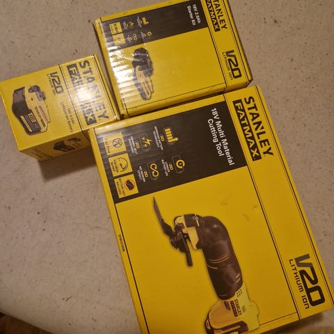 To stk splitter nye Stanley Fatmax V20 18V 4.0 Ah lithium-ion batterier selges til under halvpris i forhold til butikkprisen.