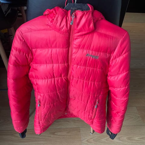 Godt brukt dunjakke fra Bergans. Lite slitasje, bortsett fra en liten rift på arm på ca 5 mm.