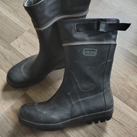 Viking gummistøvler i størrelse 39. Støvlene er laget i vanntett materiale og egner seg for bruk i vått vær.
