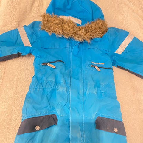 Pent brukt, med litt slitasje rumpe og knær, et par små hull knær (se bilder), og kan trenge nye fotstropper etter hvert. Mye lek og morro igjen + varme!