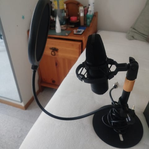 Nesten ikke brukt. Kjøpt i juli 2025. Superlux SoloCast mikrofon med kompakt og fleksibel design. Mikrofonen har plug and play-funksjon, trykk for å dempe og kardioide polarmønster. Støtter Hi-Res lyd med 24bit/96kHz oppløsning. Leveres med mikrofonstativ og USB-kabel.