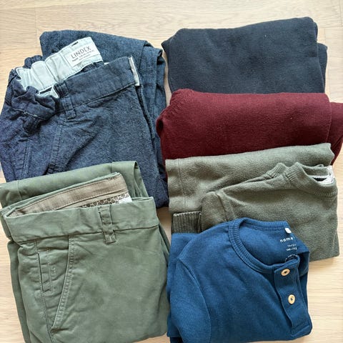3 bukser, to gensere og 1 T-skjorte