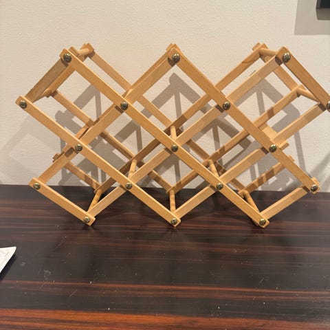 Svært lite brukt vinhylle i treverk selges! Sammenleggbar med plass til 10 vinflasker (eller champis, sider, Pepsi?) 🍾