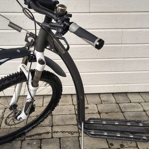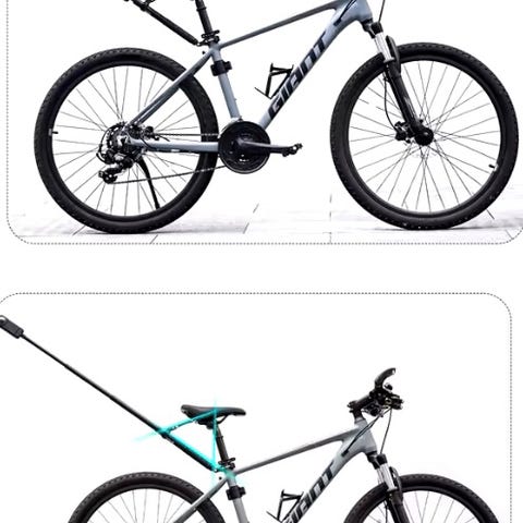 Full pakke med sykkel, stang, 2,5m strikk m/Karabinkrok, Troll Dogsport Nomesele gul/rød, Troll Dogsport halsbånd gul/rød, og Zekler kjørebriller med gult glass.