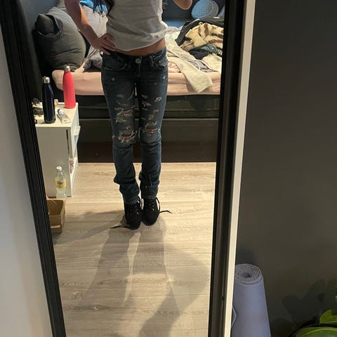 Jeansen er i ankellengde.