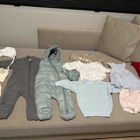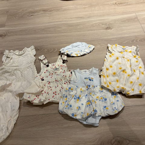Pent brukt tøy. Body, pysjamaser og bukser. I god stand. Eneste markering er at set er skrevet noen initialer på den ene newbielappen inni.