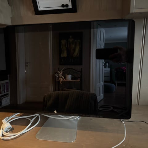Grunnet overhang til en annen skjerm, selger jeg nå denne Mac skjermen. Den fungerer fint og skjermen er i god stand med kun noen få skraper på baksiden. Kabelen er derimot litt skadet (se ene bildet), men fungerer fint så lenge kabelen ligger i ro.