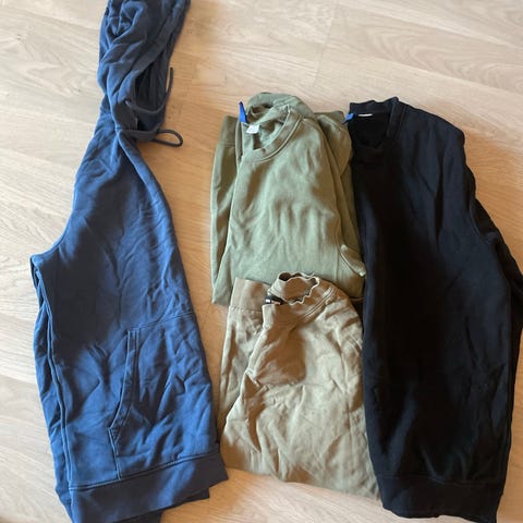 3 hele og fine polo gensere. 2 zip up med hette. En mørk grønn og en mørk blå. Og en vanlig genser i mørk blå. 300kr for alle sammen